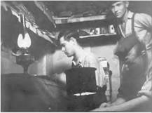 Підпільники за роботою над пропагандистськими матеріалами у криївці