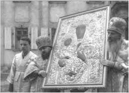 10 березня 1946 р. на паперті храму Св. Юра відбулася церемонія вручення для президії собору ікони Божої Матері Києво-Печерської лаври. Це мало символізувати возз’єднання УГКЦ з РПЦ