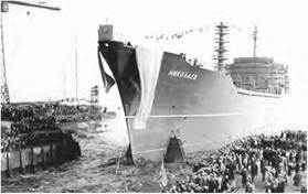 Спускання на воду судна, побудованого на Миколаївському суднобудівному заводі. 1964 р.