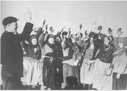 Проаналізуйте візуальне джерело. • 1. Навіщо влада ініціювала такі заходи? • 2. Чому в зібранні беруть участь тільки жінки? • 3. Про що свідчить одяг зображених?