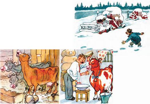 Текст до карикатур: 1. Снігозбиральний комбайн (системи Недбайлівської МТС) (1956). 2. «Чия б корова ревла, аби моя сита була...» (1955).
