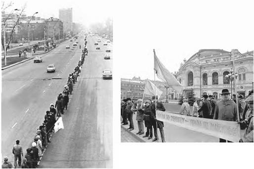 «Живий ланцюг» на відзначення Акту Злуки УНР та ЗУНР. Київ, 21 січня 1990 р.