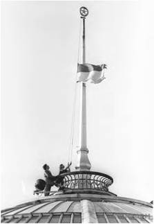 24 серпня представники від громадськості внесли у приміщення парламенту величезний синьо-жовтий стяг. 4 вересня Верховна Рада ухвалила постанову про підняття над будівлею парламенту синьо-жовтого національного прапора, що започаткувало процес відмови нової держави від радянської символіки
