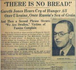 Ґарет Джонс, який оприлюднив правду про Голодомор, загинув за день до свого тридцятиліття. За загадкових обставин він був викрадений і розстріляний ОДПУ у Маньчжурії» (Роман Молдавський, Інститут дослідження Голодомору Національного музею Голодомору-геноциду).