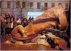 «Ленінопад». Повалення пам’ятника Леніну на Бессарабській площі в Києві. Фото: Max Levin. Reuters
