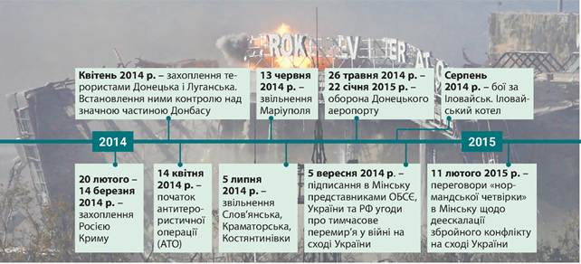 Ворожі дії Росії проти України мали тривалий і різноплановий характер. Крах підтримуваного Кремлем режиму В. Януковича підштовхнув російську владну верхівку до прямого військового вторгнення в Україну. Очевидно, що Росія тривалий час розробляла плани вторгнення в Україну й фактично здійснювала підготовчі заходи. Їх уже активно обговорювали та навіть почали реалізовувати ще на початку 2014 р. Наприкінці лютого — на початку березня 2014 р. Російська Федерація перекинула до Криму свої війська без розпізнавальних знаків і тимчасово окупувала півострів.