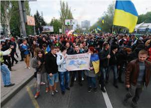 28 квітня в Донецьку відбулася остання масова проукраїнська акція, на якій зібралися близько 10 тисяч людей під гаслами «Донецьк — це Україна!».