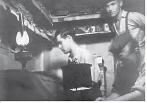 Підпільники за роботою над пропагандистськими матеріалами в криївці