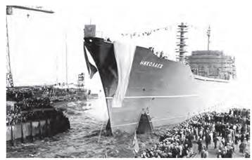 Спускання на воду судна, побудованого на Миколаївському суднобудівному заводі. 1964 р.