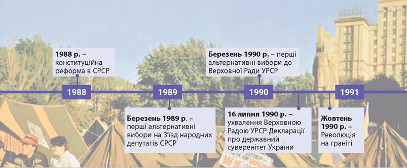 1. Установіть хронологічну послідовність подій: • Революція на граніті • конституційна реформа • перші альтернативні вибори до Верховної Ради УРСР