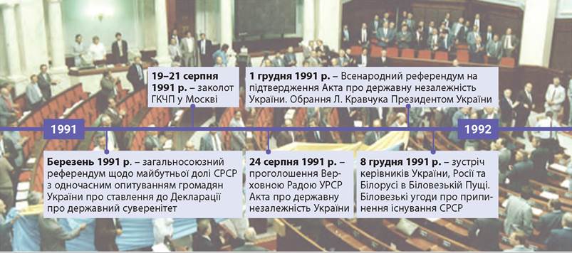 Наприкінці 1991 р. завершилася епоха, що тривала майже сім із половиною десятиліть. Відійшла в минуле радянська форма державності, яка намертво прив’язувала Україну до комуністичної російсько-радянської імперії.