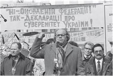Мітинг демократичних сил у Києві. Виступає поет І. Драч. Березень 1991 р.