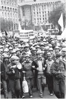 Демонстрація донбаських шахтарів на Хрещатику. Квітень 1991 р.