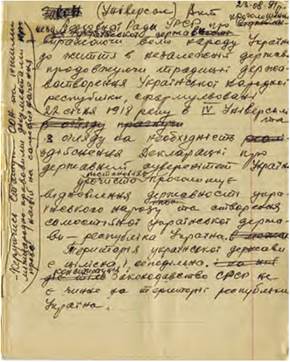 Чернетка Акта проголошення незалежності України, написана Левком Лук’яненком