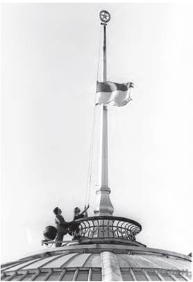 24 серпня представники від громадськості внесли у приміщення парламенту величезний синьо-жовтий стяг. 4 вересня Верховна Рада ухвалила постанову про підняття над будівлею парламенту синьо-жовтого національного прапора, що започаткувало процес відмови нової держави від радянської символіки