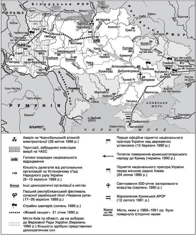 - Пробудження національного самоусвідомлення населення основної частини радянської України під впливом кількох років політики гласності.