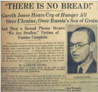 Ґарет Джонс, який оприлюднив правду про Голодомор, загинув за день до свого тридцятиліття. За загадкових обставин він був викрадений і розстріляний ОДПУ у Маньчжурії».