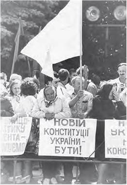 Мітингувальники перед Верховною Радою вимагають прийняти Конституцію України. Червень 1996 р. Фото: iportal.rada.gov.ua