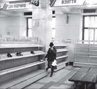 Прилавки магазинів на початку 1990-х років. Фото: ukrinform