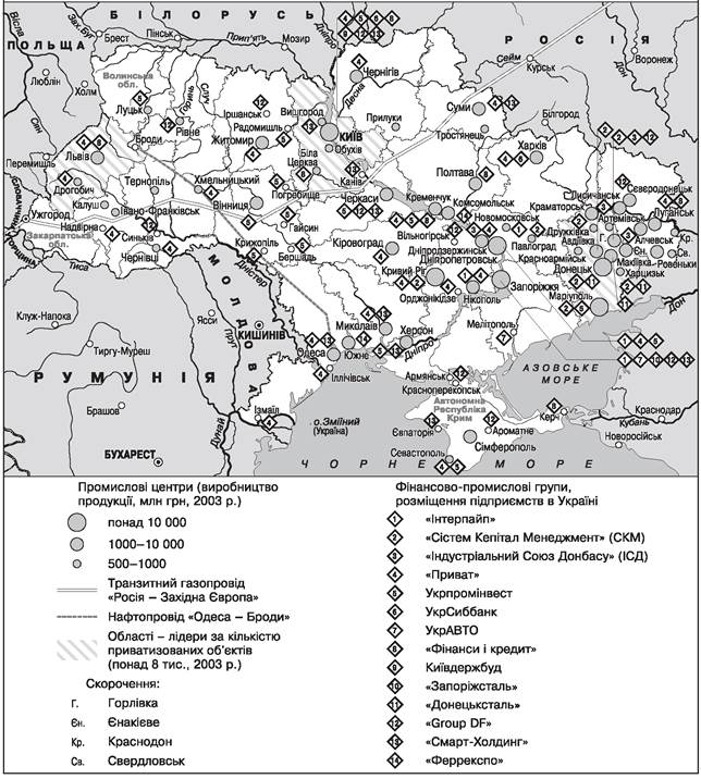 10. Опрацюйте легенду карти на с. 259 і джерела додаткової інформації. Дослідіть діяльність фінансово-промислових груп в Україні в минулому і тепер. З’ясуйте власника, сферу діяльності, територію поширення і кількість підприємств однієї з них. Чи функціонує група нині? Кому належить? Чи має зв’язки з країною-агресором Росією? Назвіть переваги і недоліки діяльності кожної з фінансово-промислових груп.