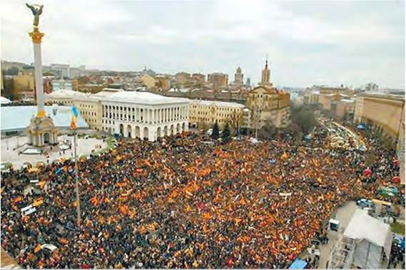 Помаранчева революція — хвиля мирних акцій протесту впродовж листопада — грудня 2004 р. через очевидні зловживання влади, що поставили під сумнів чесність виборів Президента України, вкотре зробили Україну центром уваги світових ЗМІ. Ця подія мала вагоме значення для історії України, бо пробудила в мільйонів українців почуття національної гідності й гордості, змусила їх поважати себе.