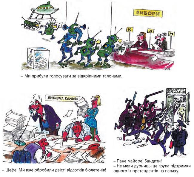 Проаналізуйте фрагменти джерел і візуальні джерела на с. 269. • 1. За допомогою яких технологій відбувалося фальшування результатів виборів Президента України у 2004 р.? • 2. Які особливості суспільно-політичного життя в Україні створювали можливості для застосування таких маніпуляцій? • 3. Про що свідчить той факт, що голоси виборців розділилися майже навпіл? • 4. Чому в Україні в ті роки були сильними проросійські настрої серед частини населення? Як це пов’язано з політичним курсом багатовекторності?