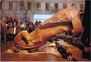 «Ленінопад». Повалення пам’ятника Леніну на Бессарабській площі в Києві. Фото: Max Levin. Reuters
