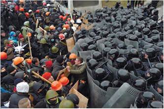 Ніч на 30 листопада відкрила нову сторінку історії України. Майдан оточили 2 тис. бійців загону особливого призначення МВС «Беркут». У цей час у наметах перебували до 400 беззбройних мирних протестувальників, переважно студенти. Міліція знищила намети і жорстоко побила всіх, хто потрапляв під руку. Декому вдалося втекти від «Беркута», а частина протестувальників заховалась у Михайлівському соборі. Зафіксовані на мобільні телефони жорстокі кадри облетіли всю планету. Дії міліції на майдані Незалежності засудили 10 обласних рад, включно з Донецькою та Луганською.