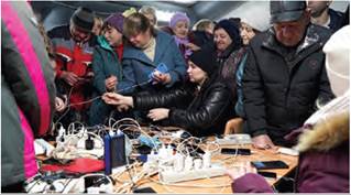 Типова картина в «Пункті незламності» в листопаді 2022 р. Фото: Kateryna Pieshykova. Press Service of Dmytro Lunin