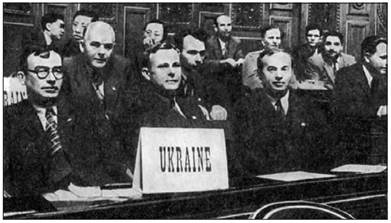 3. УКРАЇНА — СПІВЗАСНОВНИК ООН. ЗОВНІШНЬОПОЛІТИЧНА ДІЯЛЬНІСТЬ УРСР. Наприкінці Другої світової війни влада тоталітарної імперії, дотримуючись своїх інтересів, змінила можливості зовнішньополітичної діяльності підпорядкованих їй республік. Україна знову повернулася на міжнародну арену. Проте, перебуваючи у складі СРСР, вона не могла здійснювати самостійну зовнішню політику у своїх інтересах.