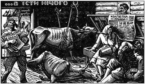Антирадянський малюнок, виданий підпільною друкарнею на заході України. Художник Н. Хасевич. 1949 р.