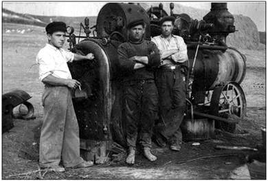 Машиніст молотильного агрегату Грядівської МТС. Львівська область. 1945 р.