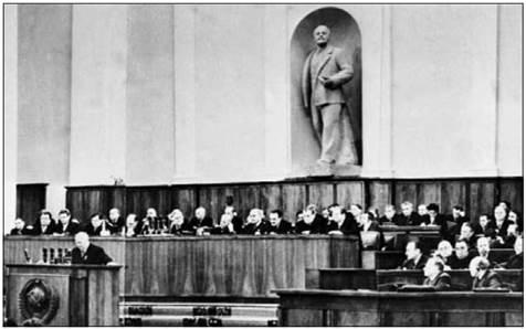 1. ХХ З’ЇЗД КПРС І ПОЧАТОК ЛІБЕРАЛІЗАЦІЇ. Часткова відмова керівництва СРСР від методів сталінського режиму унаочнювала потребу продовження десталінізації. Важливим кроком на шляху подальшої лібералізації радянського суспільства став XX з’їзд КПРС, що відбувся в лютому 1956 р. На закритому засіданні М. Хрущов виступив із доповіддю «Про “культ особи” і його наслідки». У ній він піддав критиці діяльність Й. Сталіна, звинувативши його в зловживанні владою, порушенні законів, хворобливій підозрілості до соратників тощо.