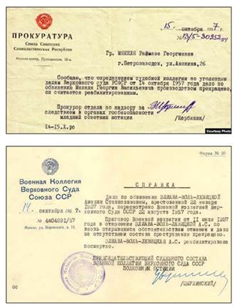 Довідки про реабілітацію. 1956, 1957 рр.