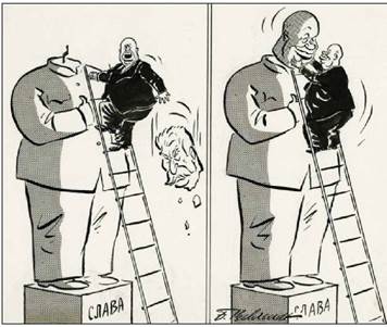 Поступово долалися страхітливі наслідки режиму особистої влади, заснованого на терорі й насильстві. Крок за кроком розвінчувався образ «великого вождя», створений апаратом пропаганди. Але процес десталінізації здійснювався непослідовно, часто підпорядковувався тактичним політичним потребам і розрахункам, що відображало як перехідний характер хрущовського правління, так і суперечливу натуру самого реформатора.