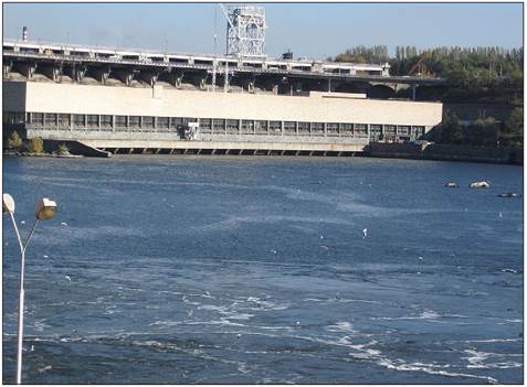 ДніпроГЕС-2 із правого берега. 1970-ті рр.