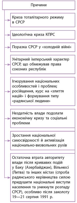 9. Якими, на вашу думку, були основні причини розпаду СРСР й утворення незалежної України? Наведіть факти, що підтверджують вашу відповідь.