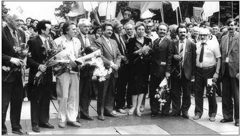 Колишні політв’язні, депутати Верховної Ради після прийняття Декларації про державний суверенітет України. 16 липня 1990 р.