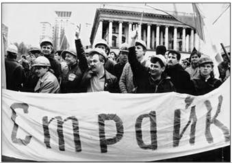Шахтарі на Майдані Незалежності в Києві. Приводом до масового страйку стало чергове підвищення цін на продукти. 1992 р.