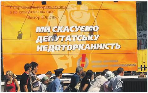 Скасування депутатської недоторканності — головне гасло блоку «Наша Україна — Народна Самооборона» на виборах до Верховної Ради України у 2007 р.