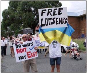 Протест українців Австралії. Напис на плакаті: «Луценку — волю!». 2012 р.