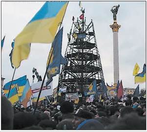 Недовстановлена новорічна ялинка на Майдані Незалежності. Грудень 2013 р.