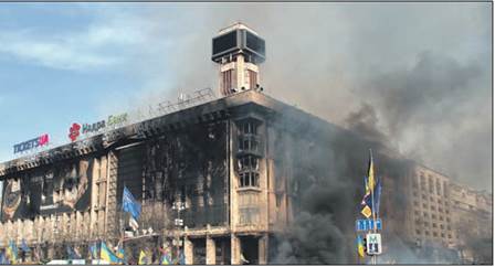 Будинок профспілок у Києві під час пожежі. 19 лютого 2014 р.