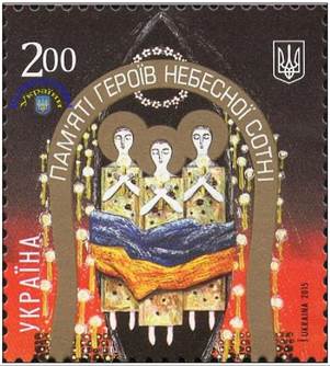 Марка Укрпошти «Пам’яті героїв Небесної Сотні». Художник К. Лавро. 2015 р.