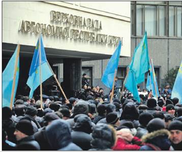 Мітинг кримських татар під стінами Верховної Ради Автономної Республіки Крим. 26 лютого 2014 р.