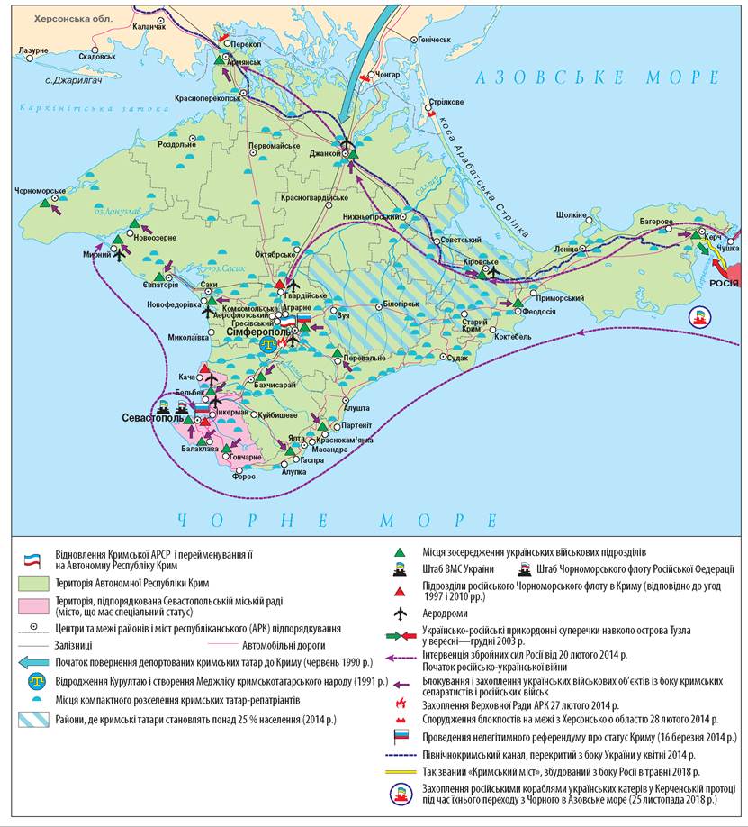 1. ПОЧАТОК РОСІЙСЬКО-УКРАЇНСЬКОЇ ВІЙНИ. ОКУПАЦІЯ РОСІЙСЬКОЮ ФЕДЕРАЦІЄЮ КРИМУ. Першим об’єктом збройної агресії став Крим. Операція із захоплення Кримського півострова розпочалася 20 лютого 2014 р. Цю дату вважають початком російсько-української війни.