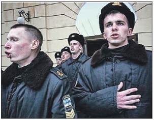 Курсанти Севастопольського військово-морського ліцею виконують гімн України. Березень 2014 р.
