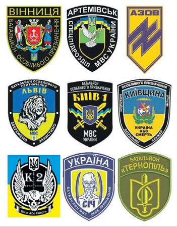 Шеврони добровольчих батальйонів, створених у 2014 р.