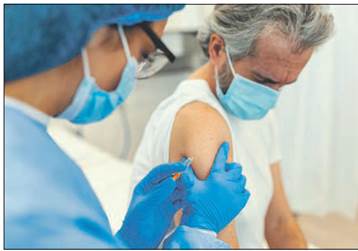 Лікар робить щеплення пацієнтові під час пандемії коронавірусу. 2019 р.
