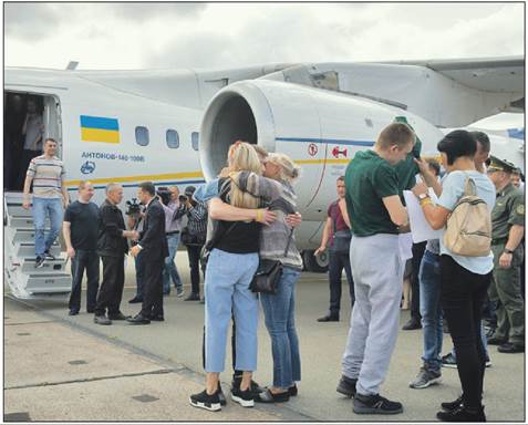 Зустріч повернених українських військовополонених і цивільних заручників під час обміну за формулою «35 на 35». 7 вересня 2019 р.